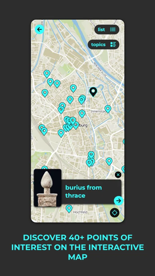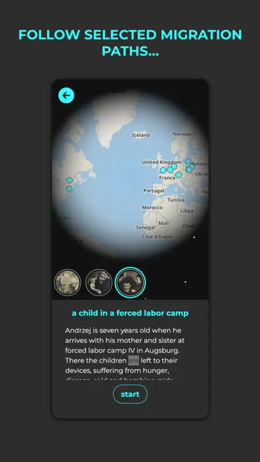 The Amigra app accompanies you on a journey of discovery into the migration history of Augsburg. Many places in the city are connected with migration. Many moving, sad, strange and also encouraging stories took place in the process of coming and going. With the app you can find out at more than 40 POIs what is hidden behind house facades or under the road surface. Explore the city, on site or from home, and learn how migration has shaped it. In an additional feature, you can follow the migration paths of a few selected people on a globe.