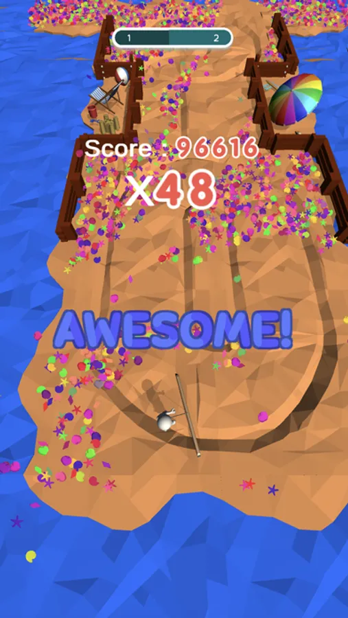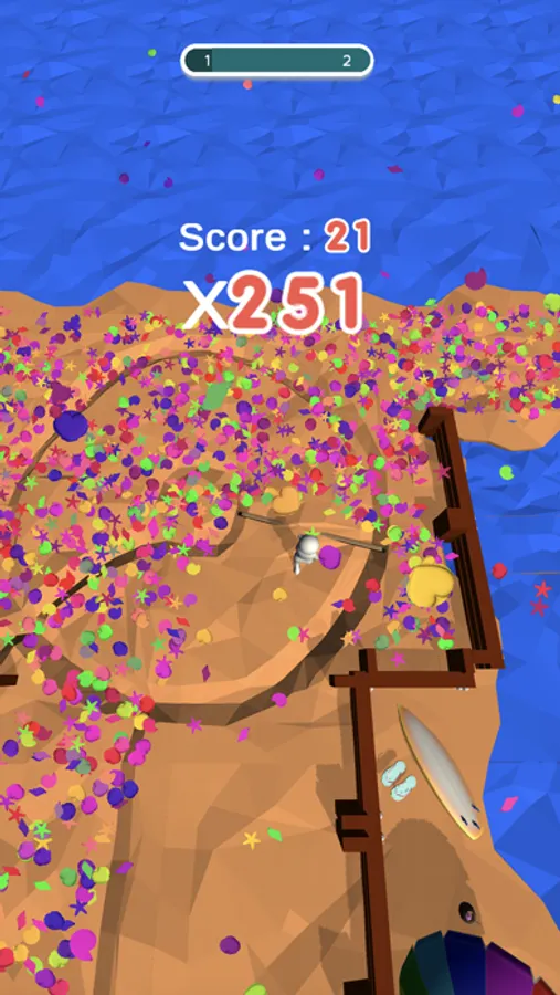 Sweep the floor with your magic broom! The cleaning man turns on himself, PRESS and HOLD to sweep it all up. There has been a party at the club, a seashell invasion at the beach, and a gorgeous blooming in the garden.