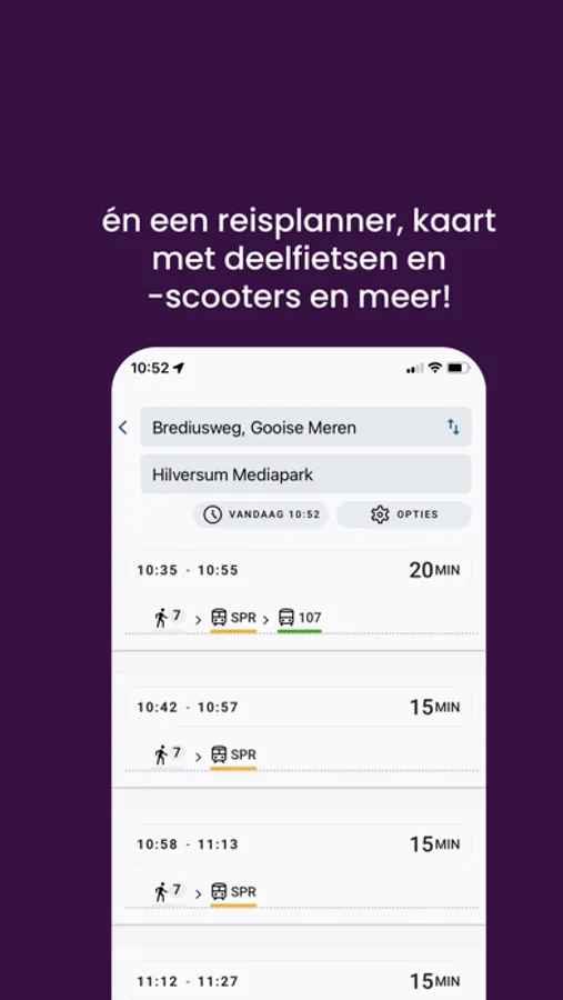 • De app biedt een handige reisplanner waarmee je een reisadvies kunt opvragen vanaf je huidige locatie of vanaf een zelfgekozen adres naar een reisbestemming in Nederland. De reisplanner geeft een advies voor bus, tram, metro, trein, en veerpont.