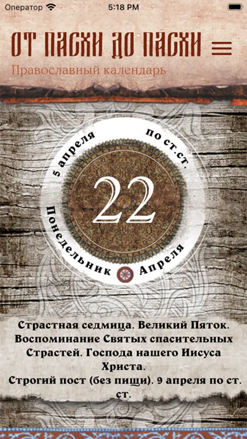 Данное приложение является электронной версией настольного перекидного православного календаря на каждый день, формата А5. Тематика ежегодно разная, но главные праздники, описания жития Святых, лики Святых, история православия, душеполезные цитаты и наставления традиционно отражены.