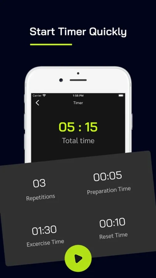 - Customize timer by Number of Sets, Set Time, Countdown Time, Rest Time.