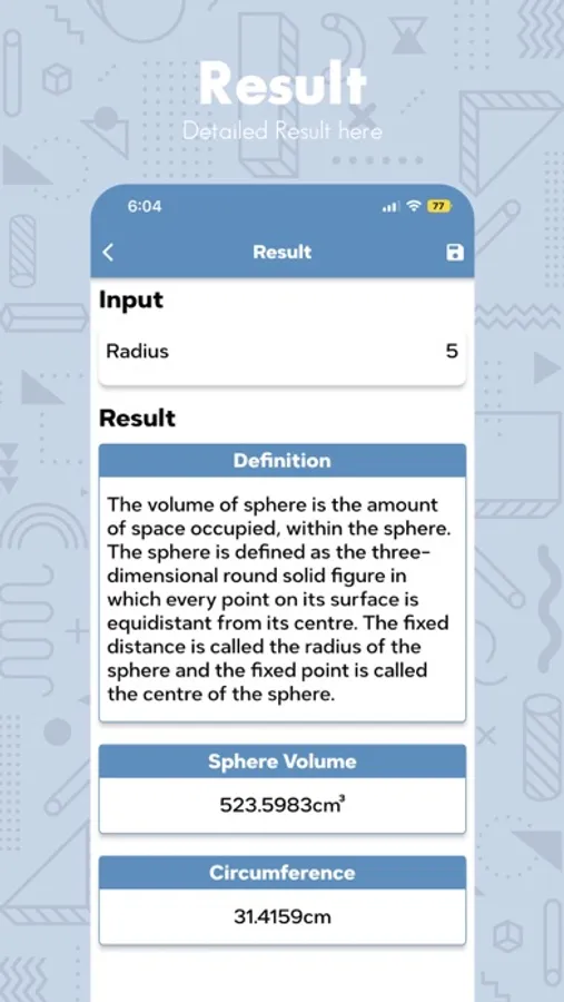 This calculator is designed with a simple layout. This app allows you to easily find the volume of a sphere in no time. Because this calculator computes the given values with an auto-processing formula and provides you with an accurate answer in no time.