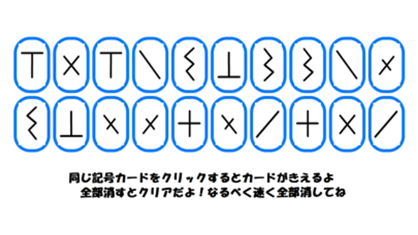 同じ絵や記号が描れたカードをクリックしカードを消していくゲームです。