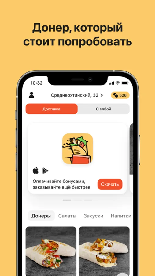 Донер рядом — приложение с удобной и быстрой доставкой вкусных донеров в Москве.
