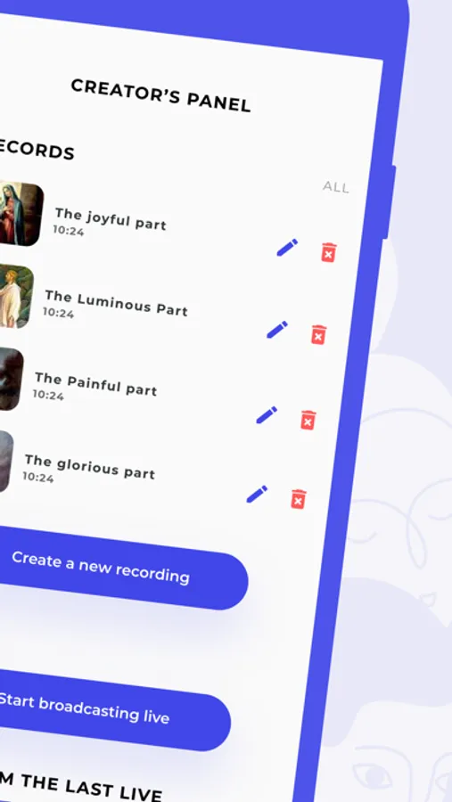 In the app, we have made a special creator's panel in which, as a user and a Celebrity, you can manage the content of your profile, edit and delete recordings, and invite your loved ones.