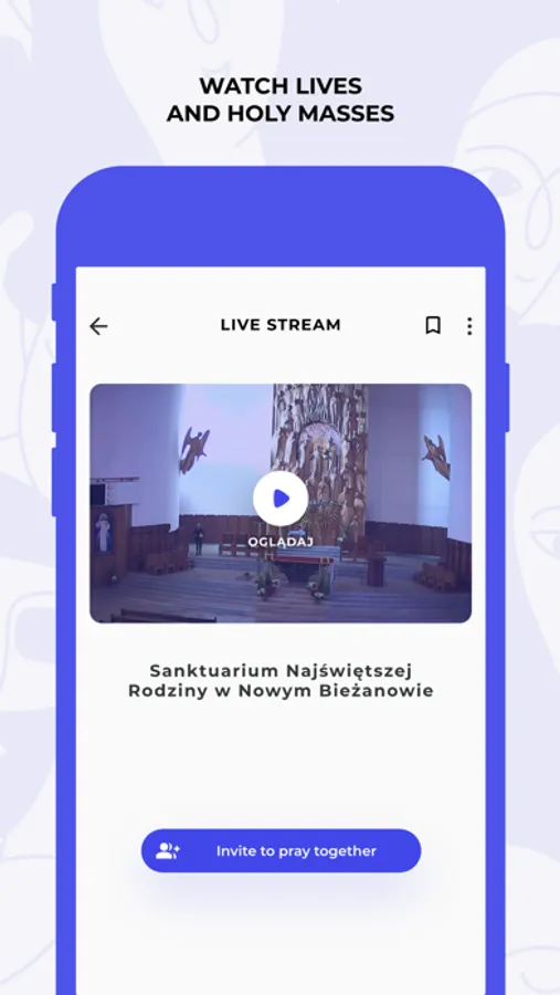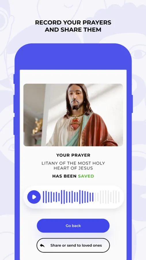 In the app you can record your prayers and share them with your friends. If you have a YouTube account, you can also use the app to share your video or broadcast live to selected friends.