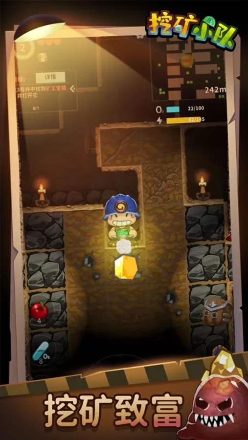 《挖矿小队》是一款角色扮演游戏。玩家扮演一名矿工,为了拯救自己的女朋友,勇敢的闯入恐怖的地下矿井。