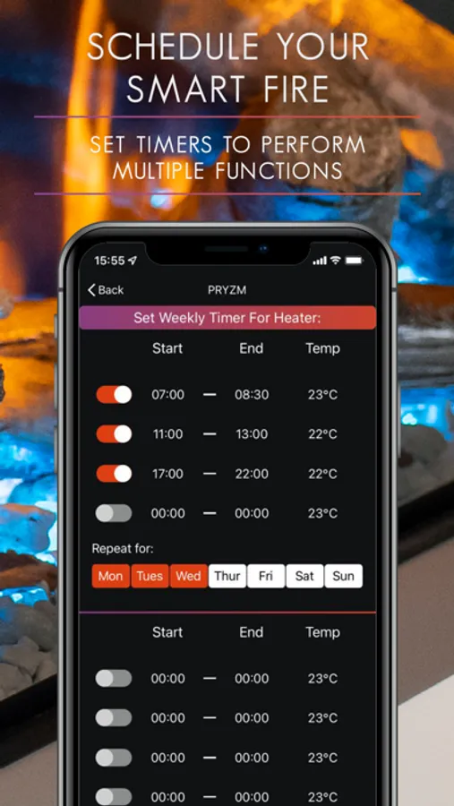 The official my Pryzm APP is the most comprehensive way to schedule, control and customise your Pryzm electric fires heat and lighting all from the palm of your hand.