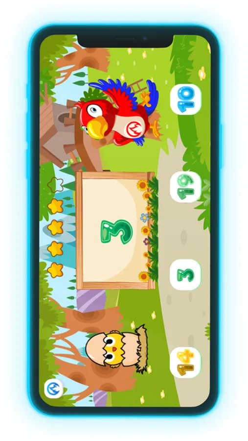 This feature helps the Kid spot the number from the board and tap the corresponding number. Whenever the Kid answers the correct number, the egg cracks open while the Parrott is looking over the exercise