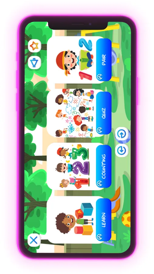 This feature is a little quiz for the Kid to complete the number pattern by selecting the a number that’s missing in place of the question mark