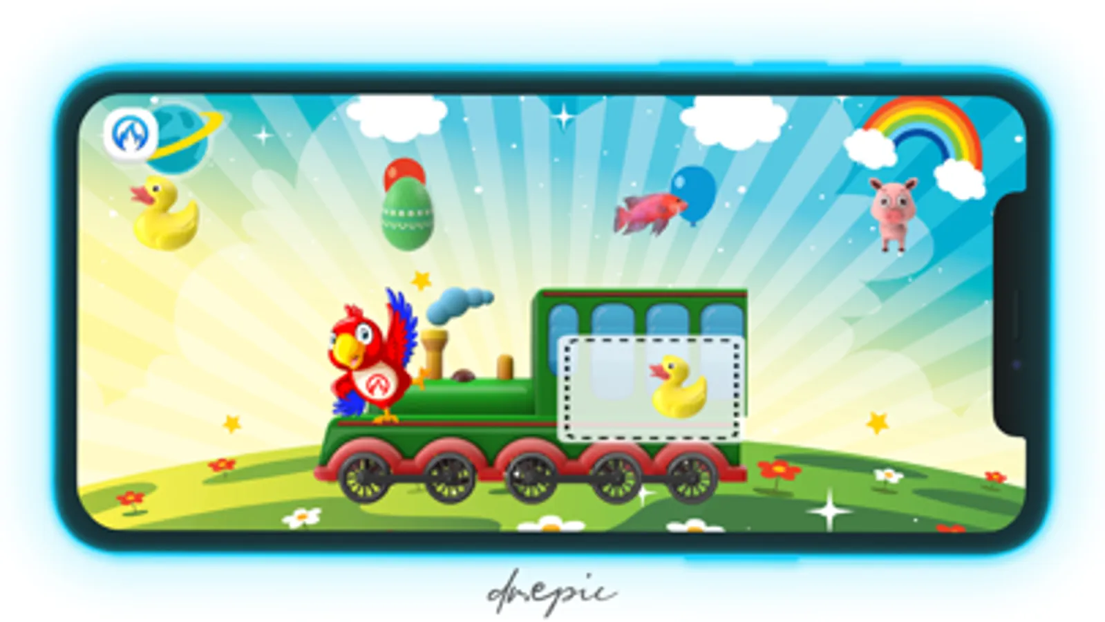 This is also exciting feature where the Kid will grab the object from the top and drag it to the back of the Train. Please assist / help your Kid place the corresponding matching object to the dotted white area