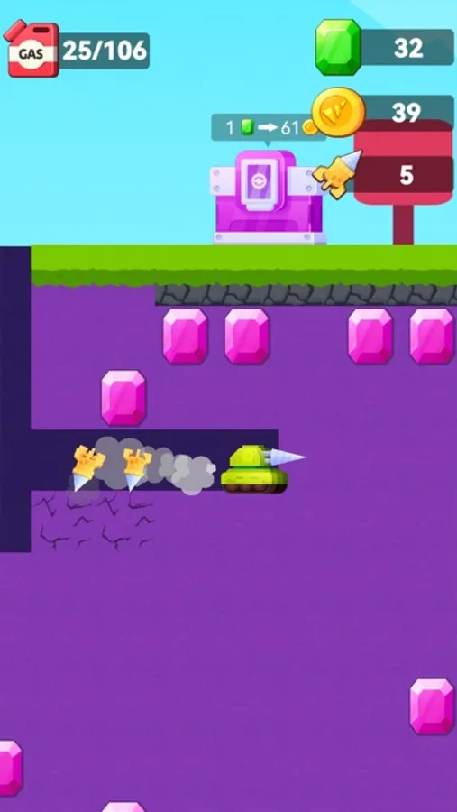 2. Collect precious stones and strengthen your digger to get the most precious stones.