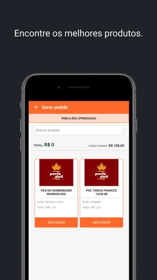 Aplicativo para compras do fornecedor Parla Deli.