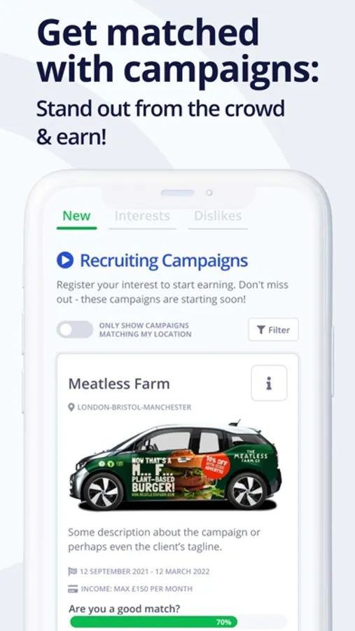 Become a ‘mobile ambassador’ for leading brand advertisers, where we get your vehicle professionally wrapped (and protected) with premium vinyl, all 100% free. You will then earn as your drive.