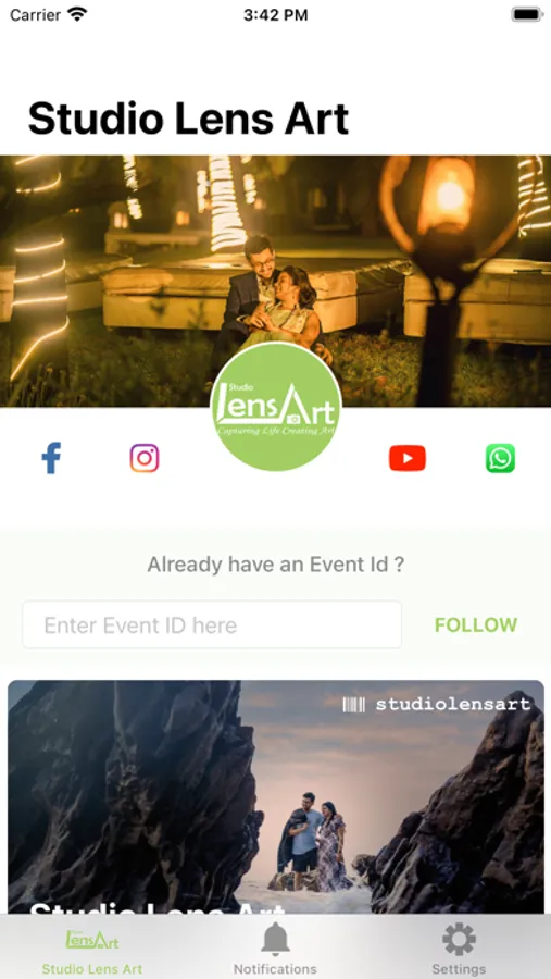 The Studio Lens Art App is an Instant Photo sharing App, which lets you Pre-view and Share your Event photos