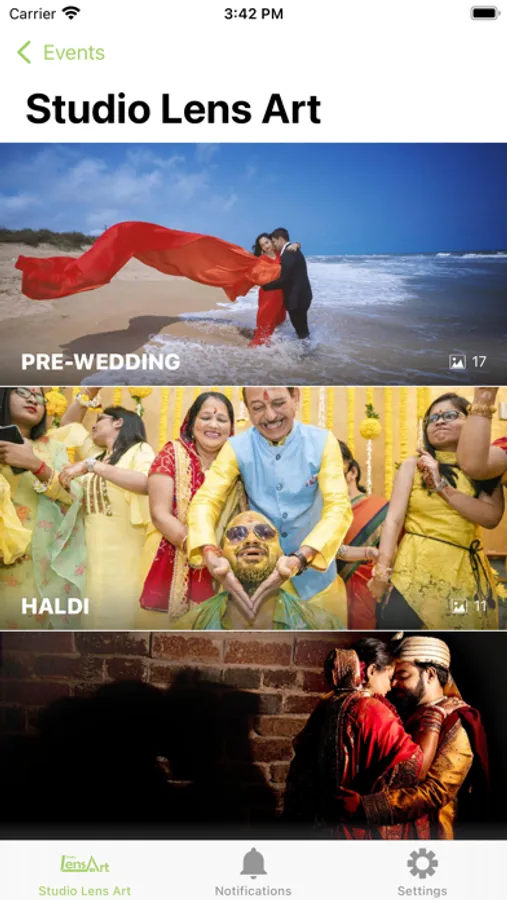 LIVE: Photos are Selected and shared by us instantly on the App. No more waiting for Weeks for your Event photos