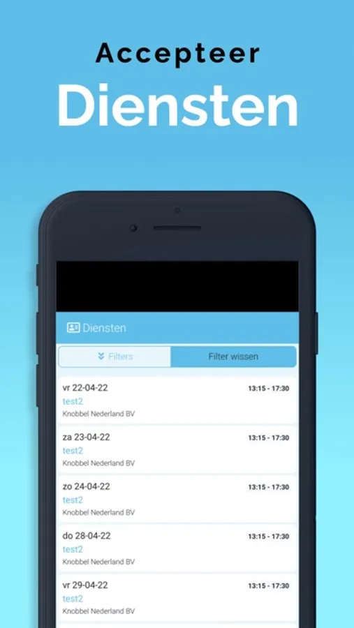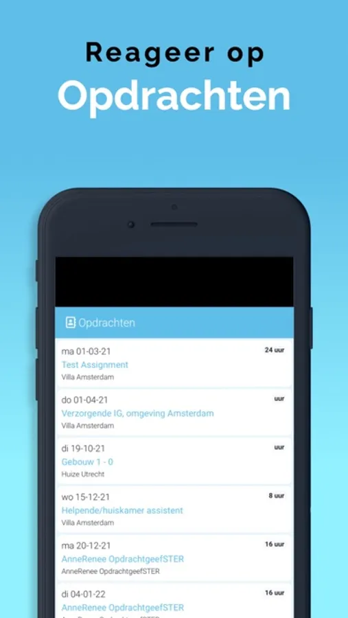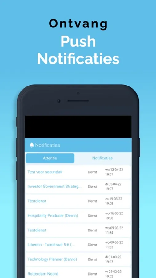 De App is gekoppeld aan het systeem waardoor informatie altijd up-to-date is via een overzichtelijk dashboard. Bovendien komen belangrijke meldingen, als nieuw beschikbare opdrachten, via een pushmelding binnen op jouw telefoon. Zo mis je niets. Ook wijzigingen worden direct zichtbaar, daarmee ook in jouw agenda. Je bent dus altijd op de juiste plaats aanwezig.