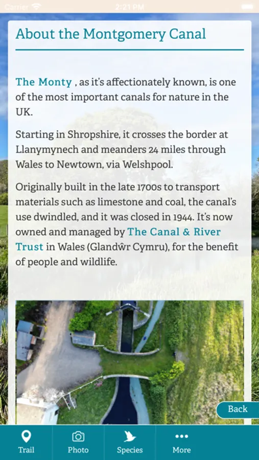 Take a walk on the wild side along the Montgomery Canal in Wales. An interactive dual language app designed to inform and inspire visitors to the Montgomery Canal about the wildlife that can be found there whatever the season; from Montgomeryshire Wildlife Trust, one of 46 independent Wildlife Trusts across the UK who are working for an environment rich in wildlife for everyone.