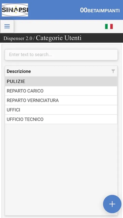 Applicazione per la gestione dei Distributori Automatici DPI di Sinapsi S.r.l.