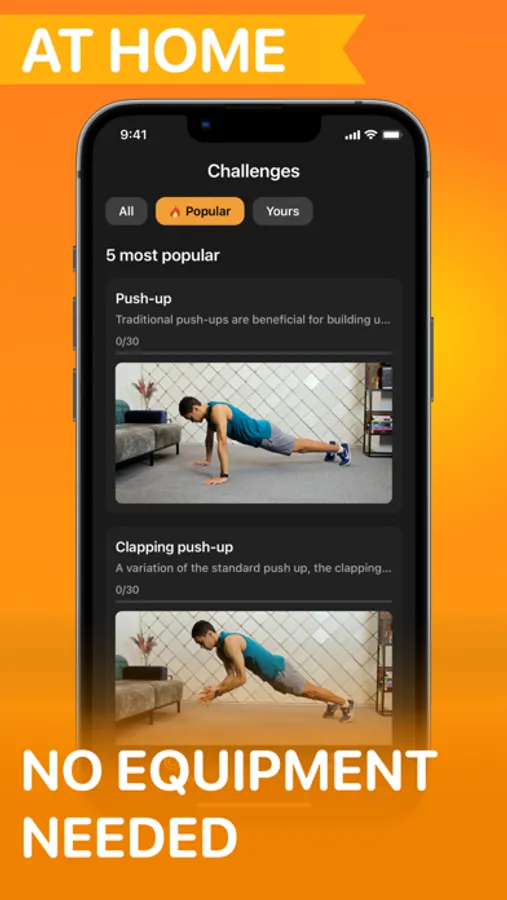 Challenge yourself! Try to do the 30 day challenge with Fitness coach: Daily challenge!