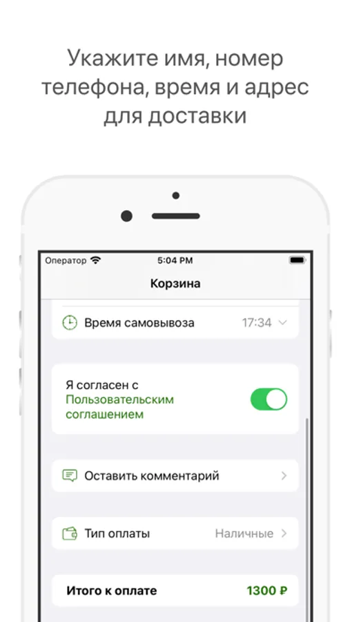 Укажите время, когда хотите прийти за своим заказом или выберите доставку с указанием времени и адреса доставки.