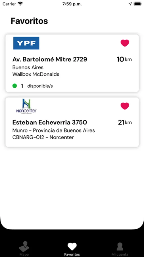 - Favoritos, elige tus puntos favoritos para tener llegar más rápido a tu recarga.
