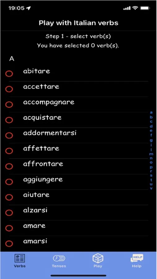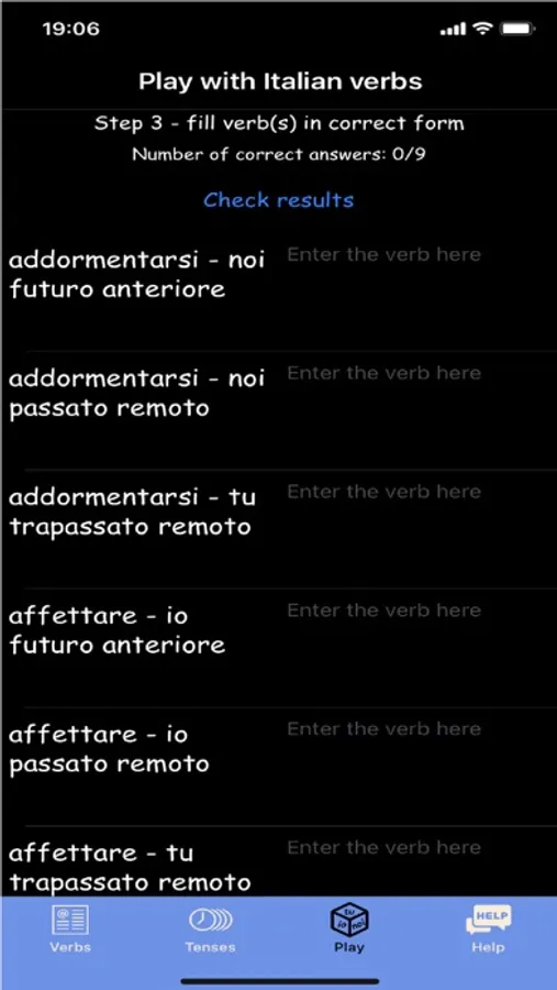 Play with Italian verbs is an application that helps you to practise conjugation of Italian verbs on your own, at your own pace, where and when you want. This tool contains the most common Italian verbs and all the Italian tenses. There are a lot of similar verb forms with different meanings in Italian, so it is very important to master this complicated part of Italian language if you want others to understand you.