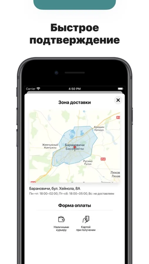 — Быстрый заказ с мгновенным подтверждением через приложение.