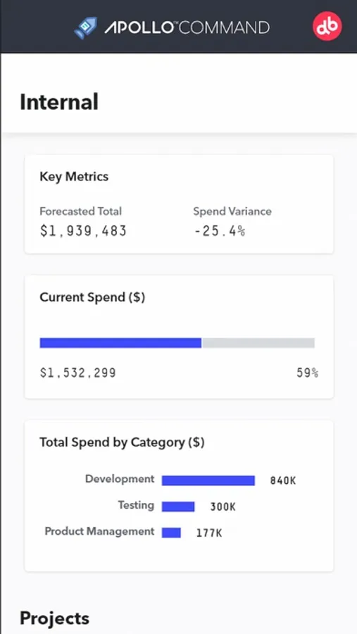 Apollo Command is an unparalleled approach to product development and delivery. The application gives you complete visibility throughout the entire product development lifecycle, allowing cross-functional teams to work swiftly, seamlessly, and react and pivot quickly, if needed. Using Command, you have comprehensive insight into the status and history of your projects as well as access to reporting and management tools for your ongoing digital product development. You also have secure access to administrative updates, budgeting, and scheduling.