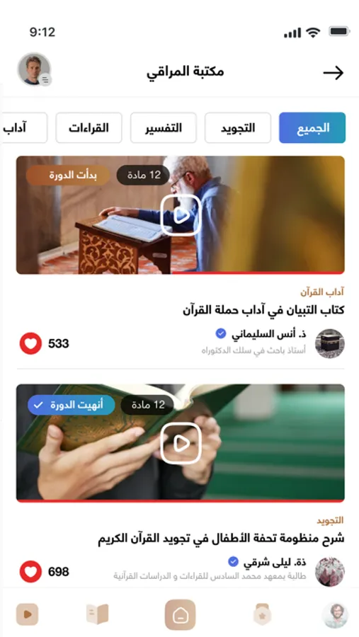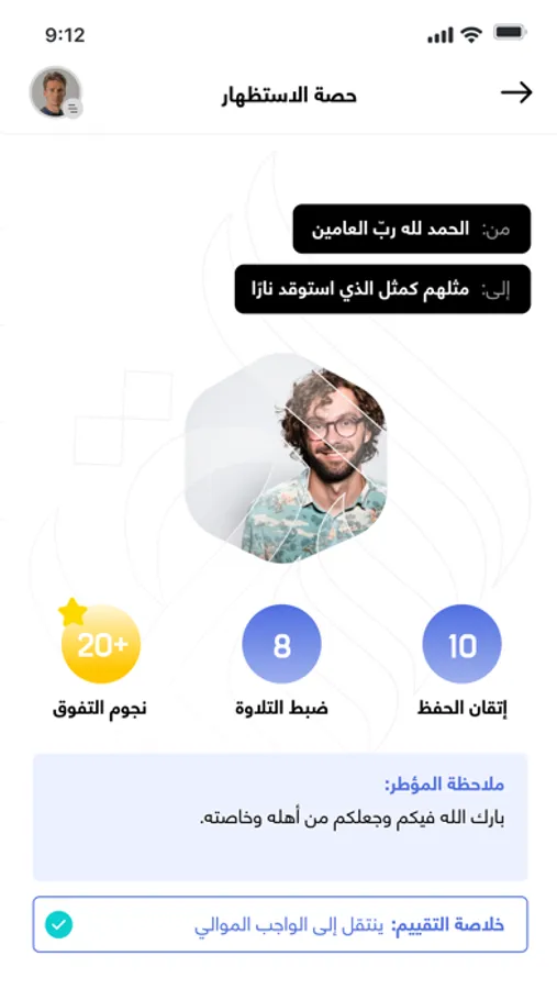 • إرسال تسجيل التلاوة والتوصل بالتقييم والملاحظات