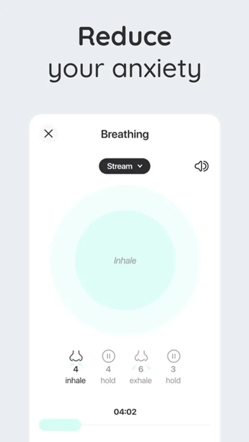 • Breathing exercises: Choose from three different breathing techniques with calming background sounds to help manage anxiety and stress. These meditative breathing exercises are meant to provide you with deep relaxation and comfort.