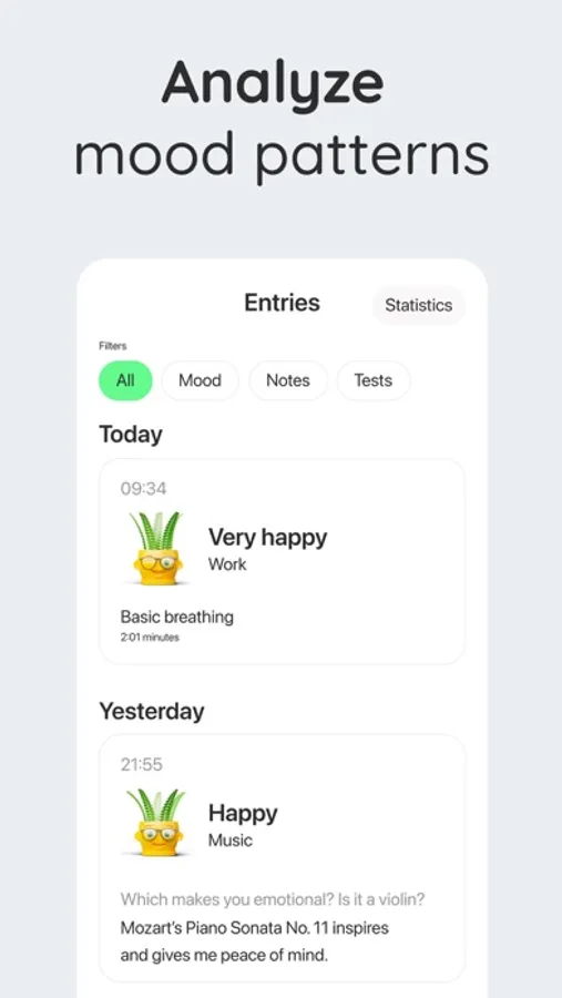 • Statistics: Keep track of your progress with statistics on your anxiety tests, panic attack records, and emotion trackers, so you can see how your efforts are leading you to stable mental health.