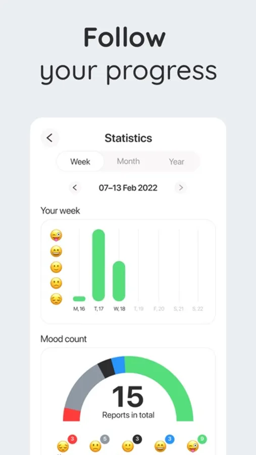 • Mood reporting and guided affirmations: Track your mood and understand how you feel about different aspects of your life, so you can manage them better and lead a positive lifestyle.