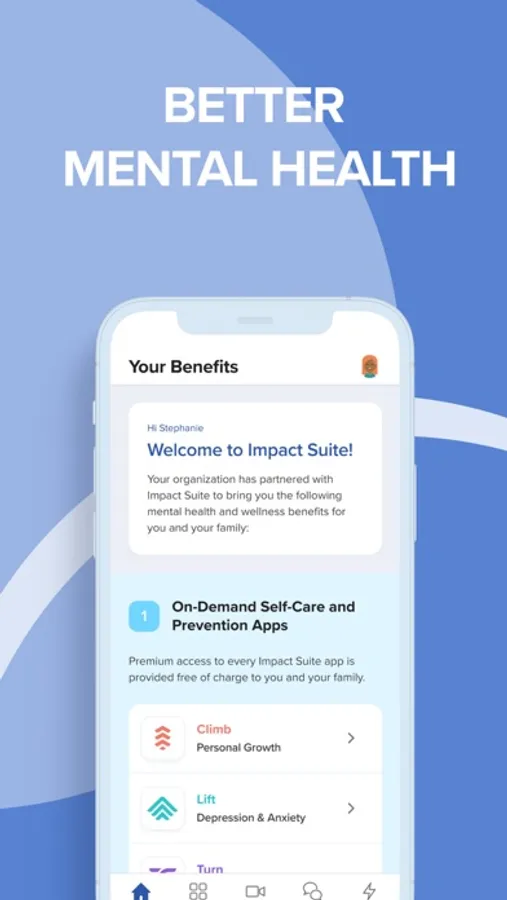 Impact Suite connects you to four different communities of people who know what you’re going through, depending on your needs: Climb for general wellness and improvement, Lift for depression and anxiety, Turn for substance abuse recovery, and Fortify for sexual compulsivity.