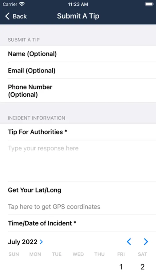 This app is not intended to be used to report emergency situations. Please call 911 in an emergency.