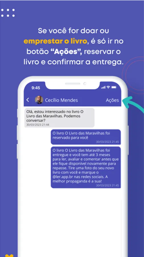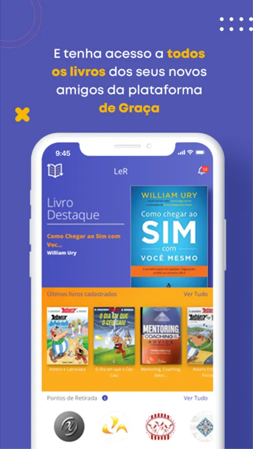 O LeR é o primeiro aplicativo de compartilhamento de livros do Brasil. Aqui você conhece amigos e encontra empresas com livros físicos de GRAÇA para disponibilizar para você! Para ter acesso a tudo, basta disponibilizar um ou mais livros que você tenha para doar a quem quer ler.