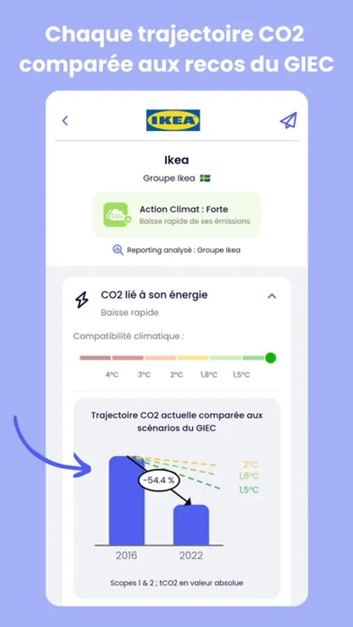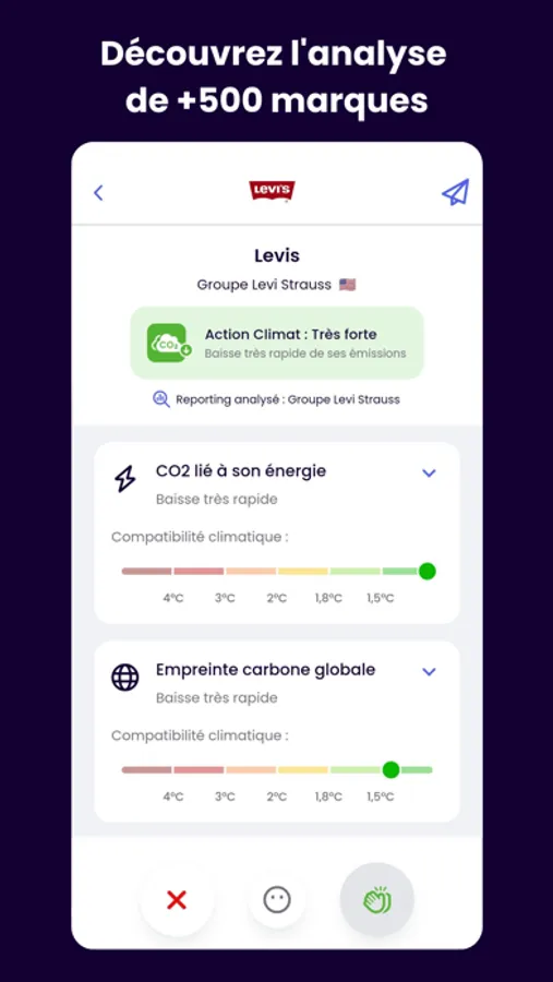 Cette marque est-elle alignée avec un réchauffement climatique de 1,5°C ? 2°C ? 4°C ? Rendez-vous sur l'appli pour le découvrir.