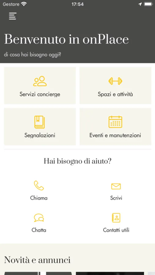 App per visualizzare servizi, attività e spazi presso onPlace di Argelati-Fumagalli, effettuare prenotazioni e contattare il Concierge.