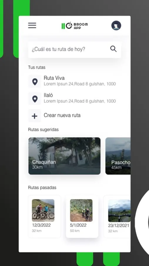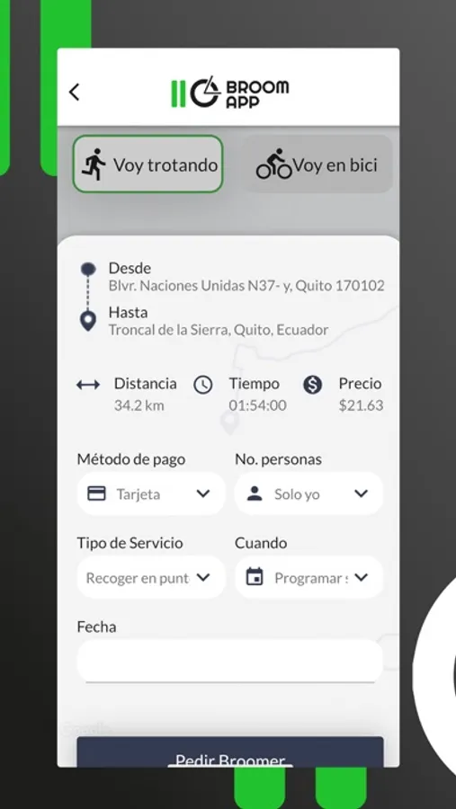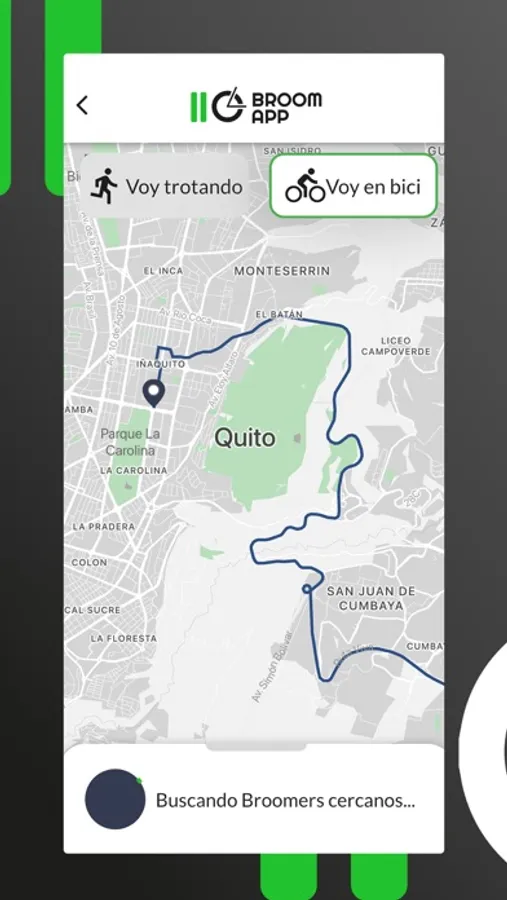 Broom App es la aplicación que usará el deportista para solicitar el servicio de acompañamiento (Broomer) en su entrenamiento.