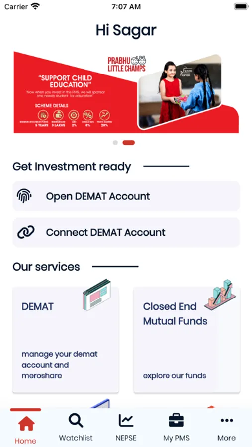 This app is Prabhu Capital’s official mobile app. Enjoy all of our services from your own mobile phone at your own convenience. Use this app to follow the market, manage your Demat and MeroShare Account, and use our portfolio management services. Register and connect your Prabhu Capital Demat Account or open a new Demat Account from the app and get started today!