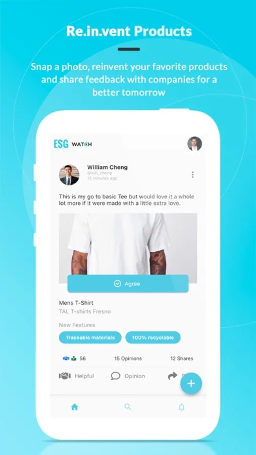 Re.in.vent - A new way to shop, driven by global conversation. Users reinvent products for companies by snapping a photo and creating new ethical or sustainability attributes that matter most to them. Share on feed for an open, honest global exchange that creates the feedback companies need for future purpose driven products for us all!
