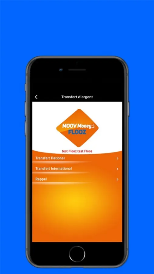 Accédez en un clic à tous vos services Moov Money Flooz (Mobile Money) offerts par Moov Togo : transfert d'argent - retrait d'argent - paiement de factures - achat de crédit de communication - gestion de compte Moov Money Flooz