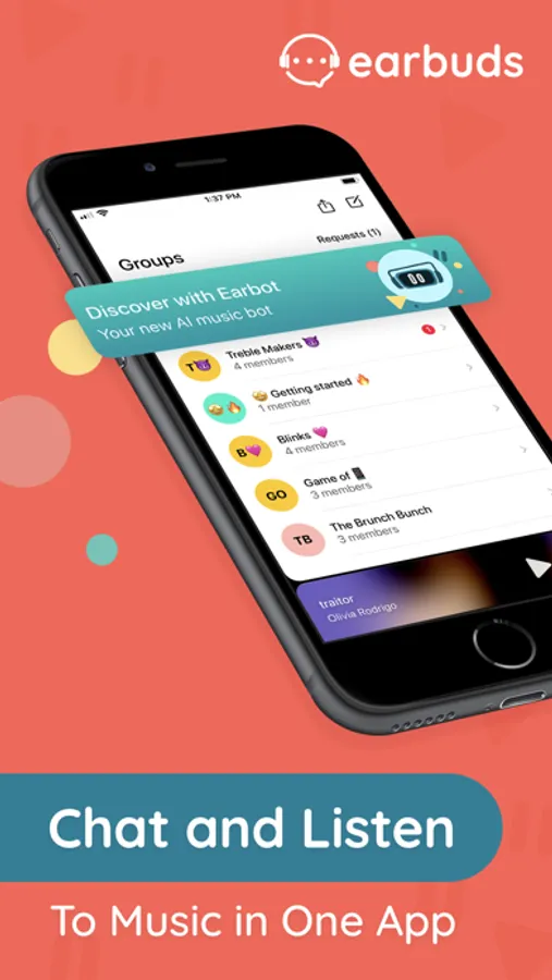 - Earbuds is half music, half chat. Talk about your favorite songs right in the app
