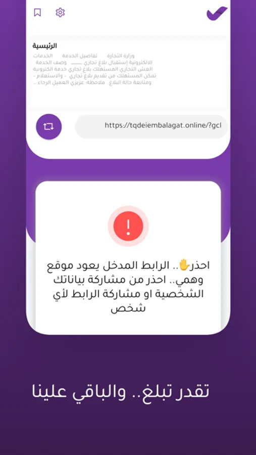 احنا سوينا تطبيق يساعدك في التعرف على المواقع الوهمية عشان تتجنبها وما تعطيهم معلوماتك.