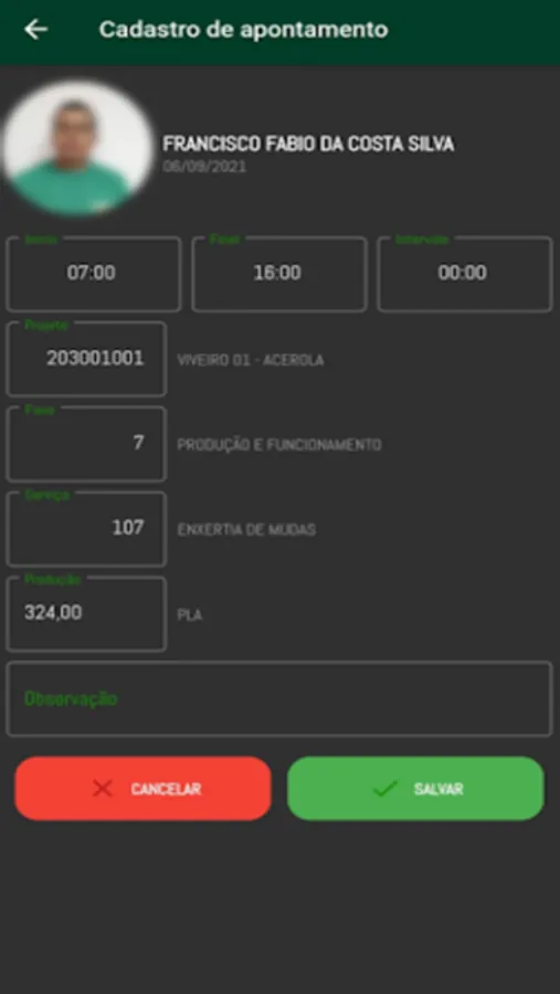 para Apontamento no Campo. Aproveita toda a estrutura já existente no Sankhya de funcionários (Departamento