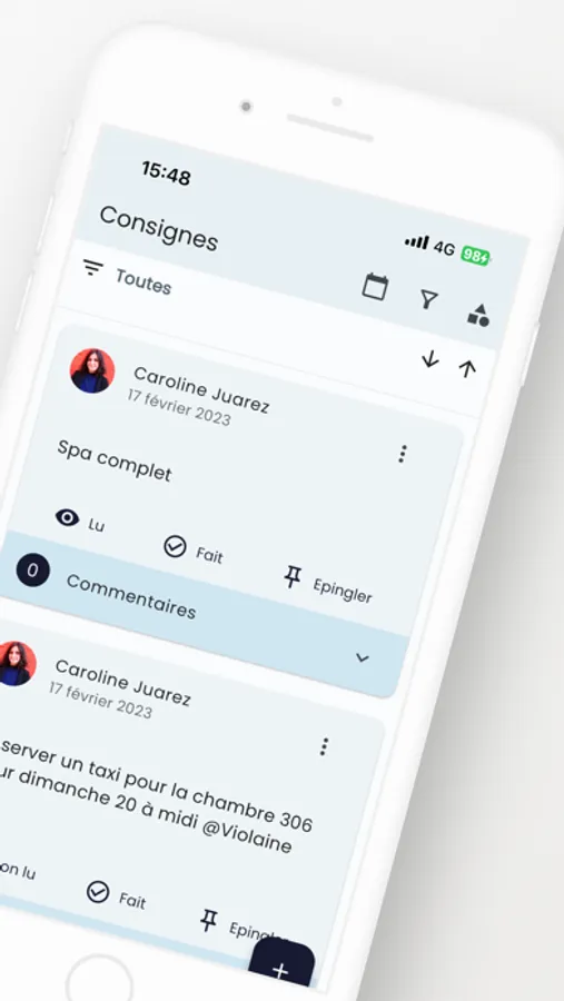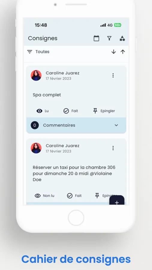 - Passage de consignes simplifiés, à l'aide de notre cahier digitalisé : passez des consignes à vos collaborateurs en quelques secondes.