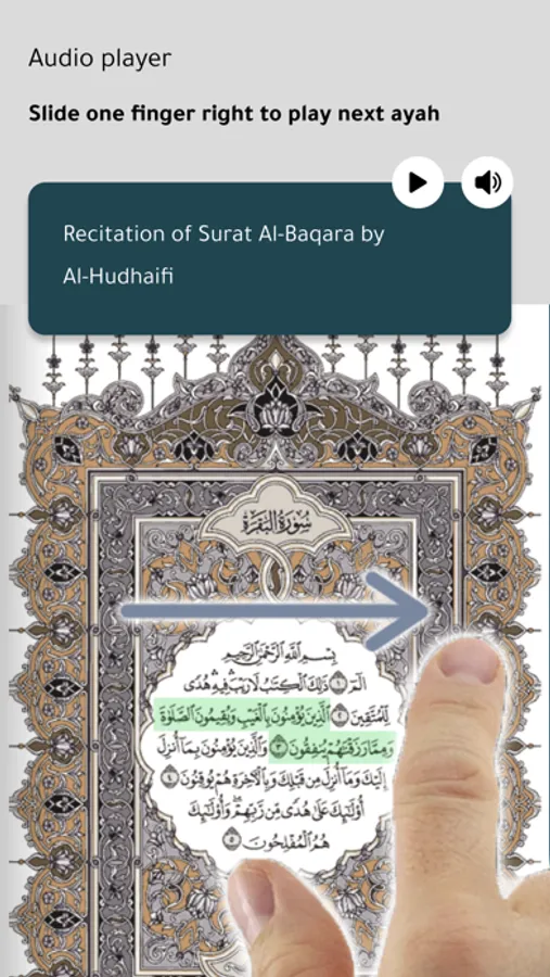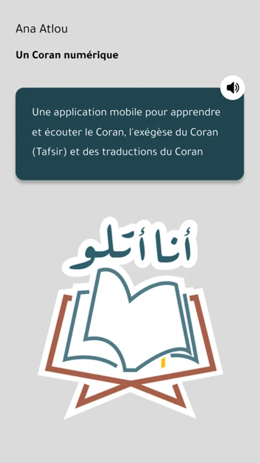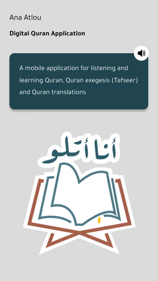 “ AnaAtlou ” is a mobile application for listening and learning Quran, Quran exegesis (Tafseer) and Quran translations, dedicated to people with visual impairments and special needs, so they can use and navigate through the entire application without the need of any help from any person, or accessibility app(s). This is due to a new approach for usage and navigation with a novel methodology for mobile applications, where the navigation is based on a set of tactile touchscreen gestures coupled with voice guidance support within the entire application, in a controlled, smooth and user-friendly manner.
