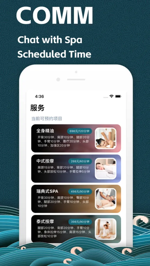 BOOK.You can book a massage therapy to your home,office,or enjoy it in spa.
