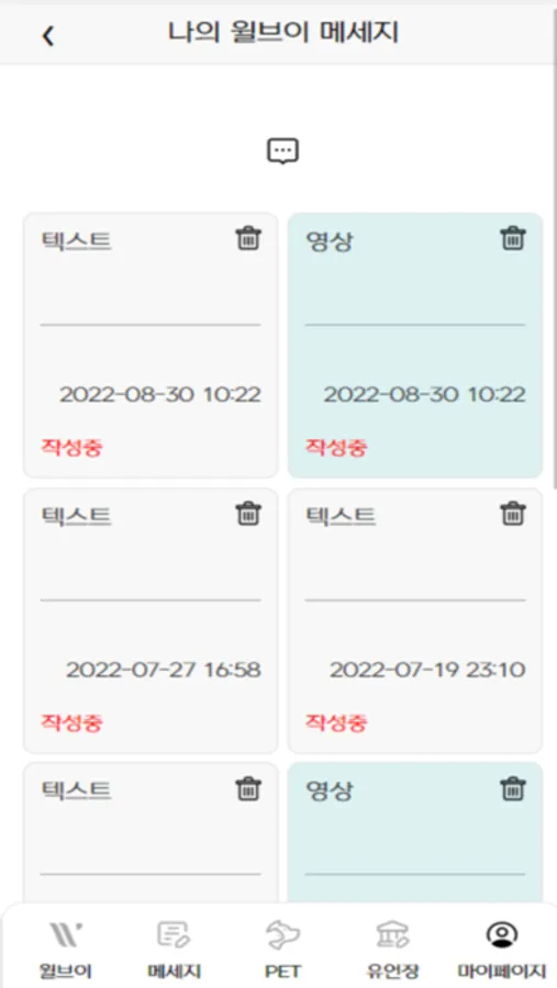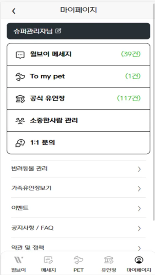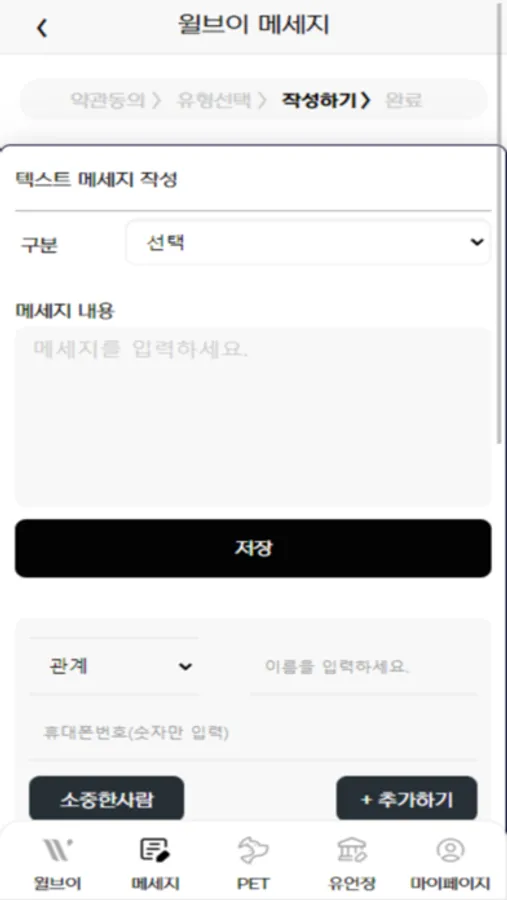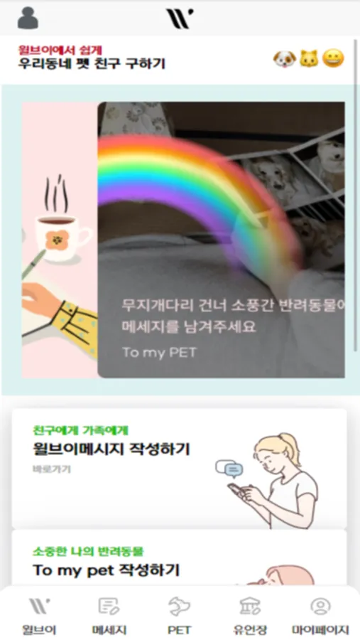 윌브이는 현대인에게 없어서는 안될 반려동물에게 남기는 메세지서비스도 있습니다