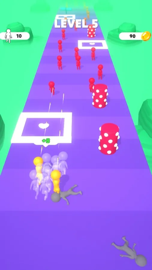 Shoot and destroy enemies to increase your one-man squad. Each damage done to the enemy means your team gets stronger. You will see the number increase as you shoot the enemies. Keep your score by playing carefully. If you can't destroy the enemies, you can't expand your team and you will lose.